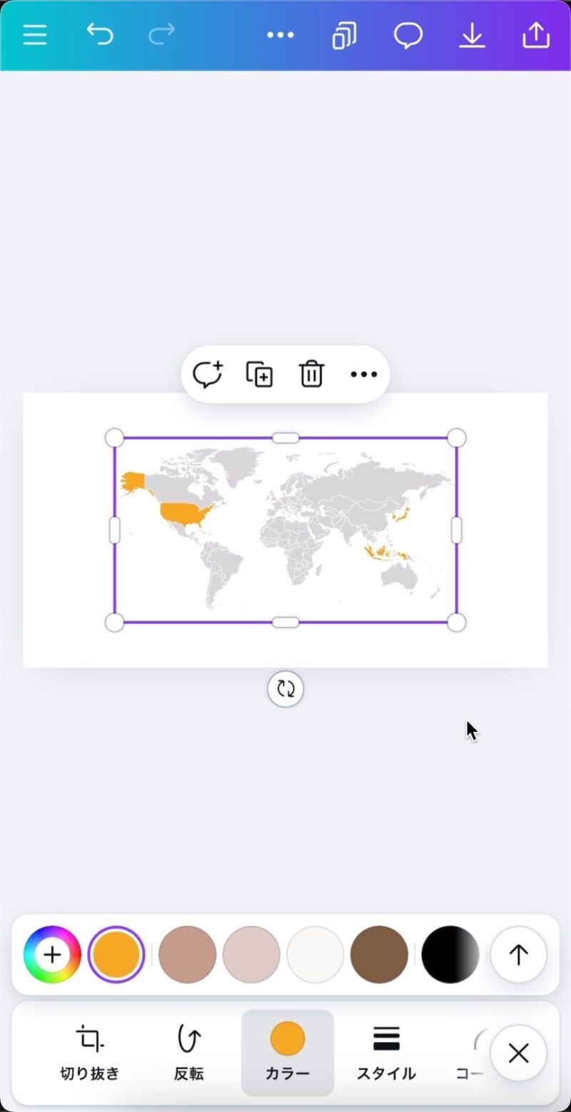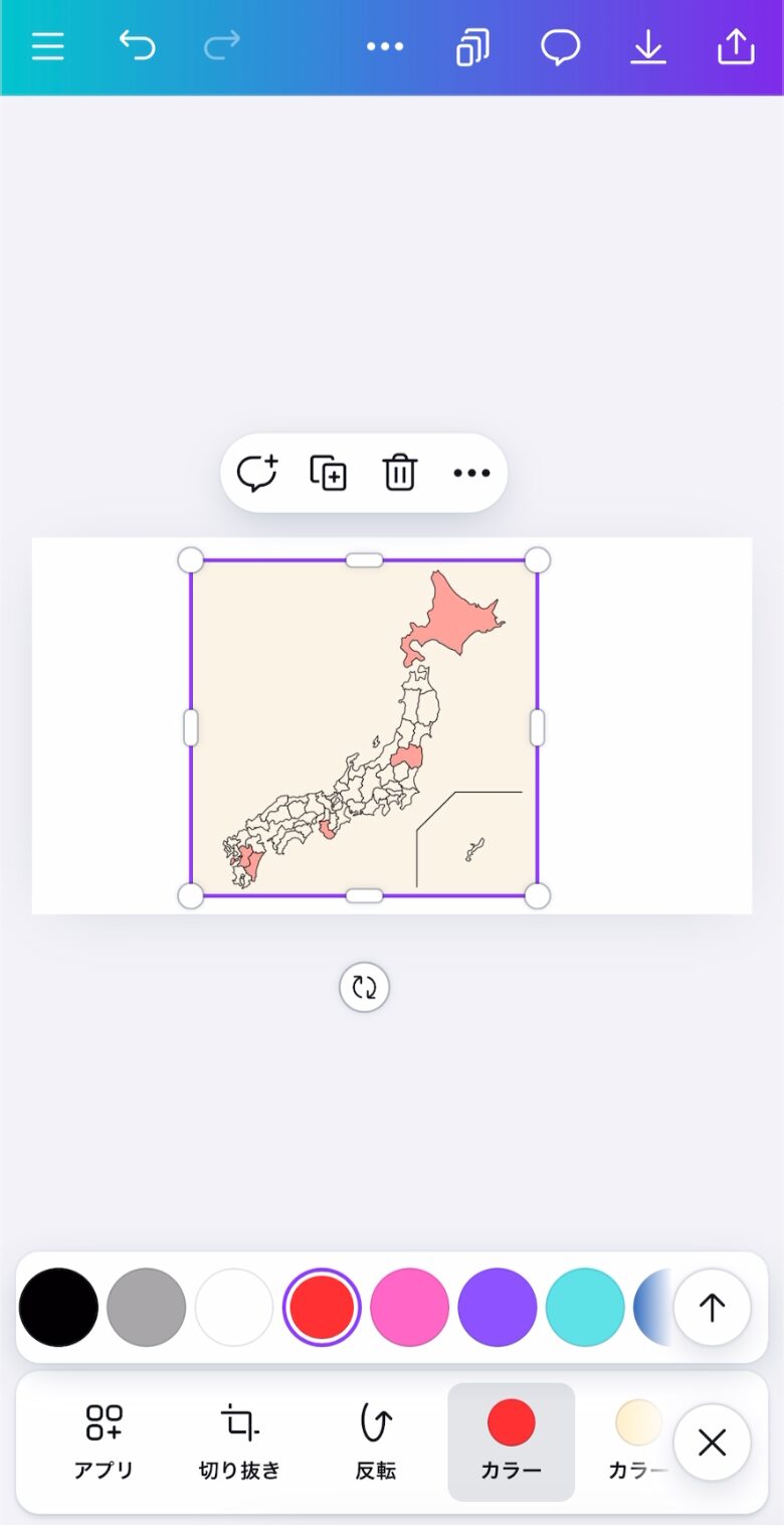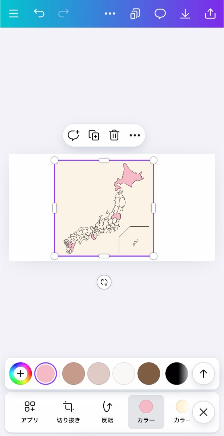 アプリで地図の色づけを行い、Canvaにアップロード & 色を変えるという大まかな流れは世界地図と同じになります💡