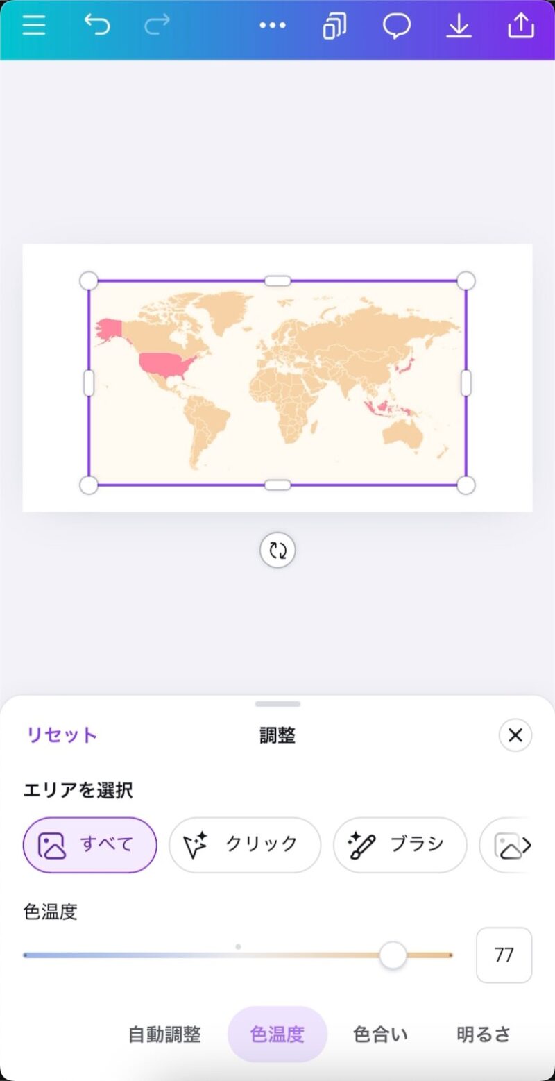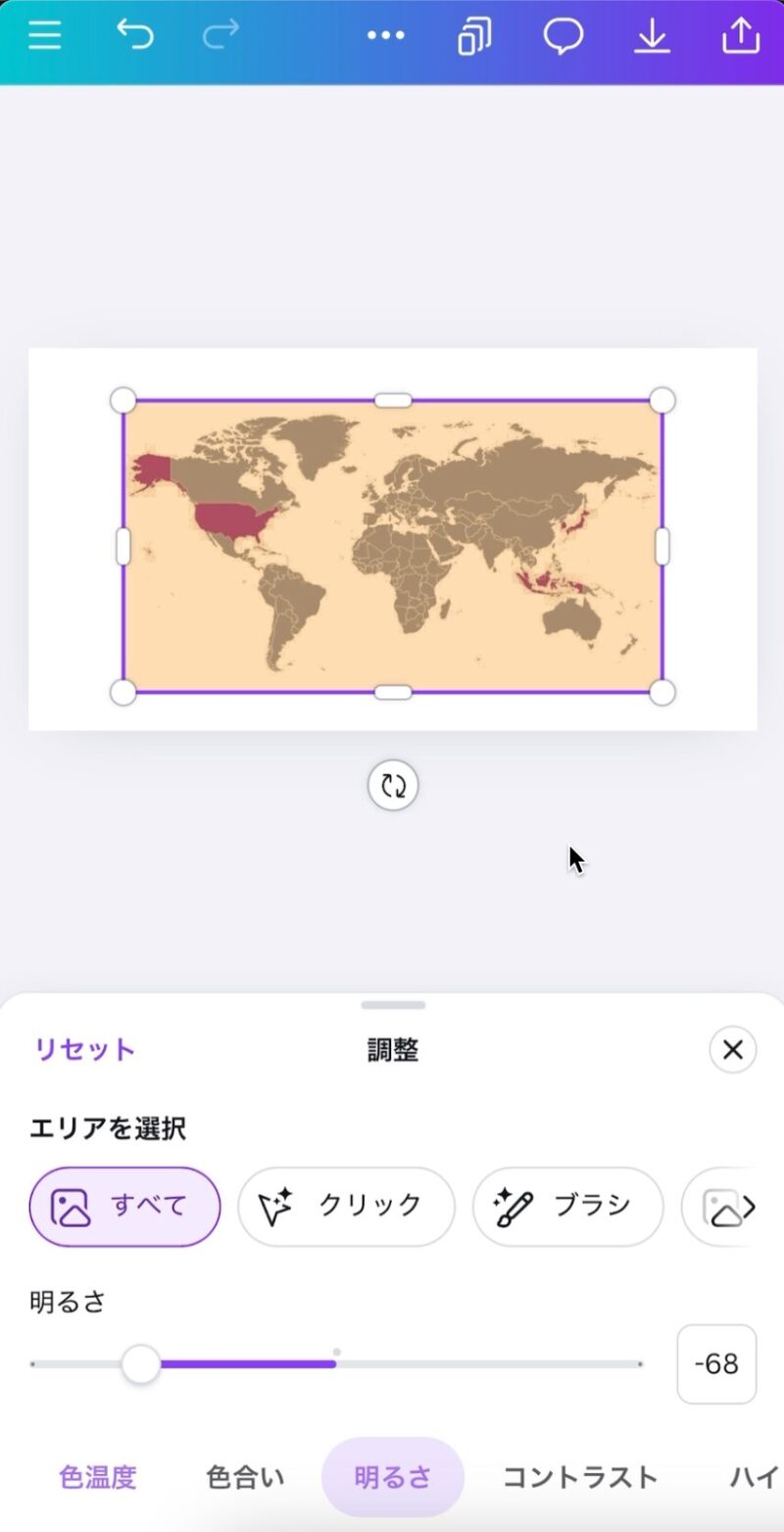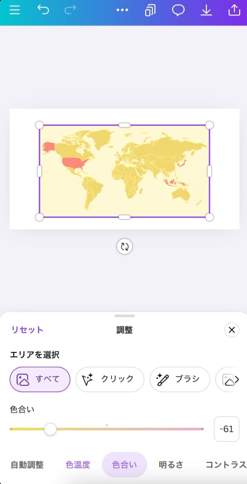 アプリで地図の色づけを行い、Canvaにアップロード & 色を変えるという大まかな流れは世界地図と同じになります💡