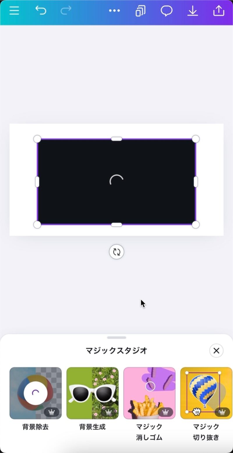 ↓は「背景除去」を1度タップしたあとの画面で、ここで再度「背景除去」をタップするとしばらくグルグルしたあとに背景が消えます。