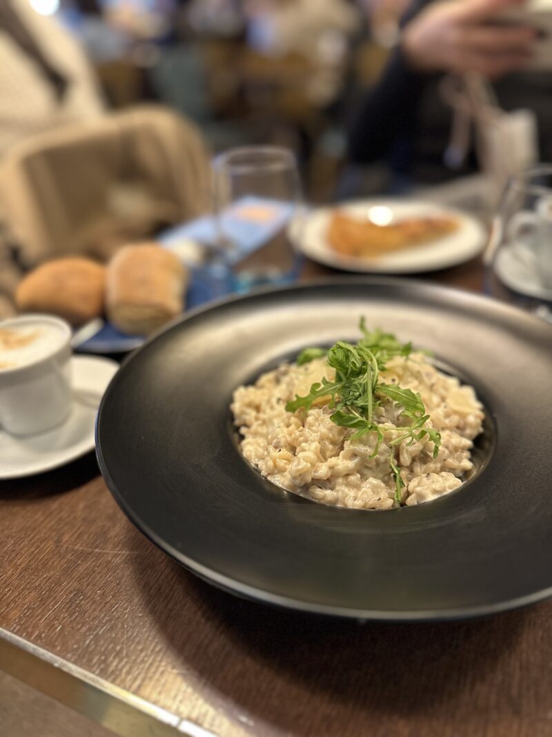 とにかくお腹が空いていたので、アップルパイとホットチョコを頼む友人とはうって変わり、がっつりトリュフリゾットw