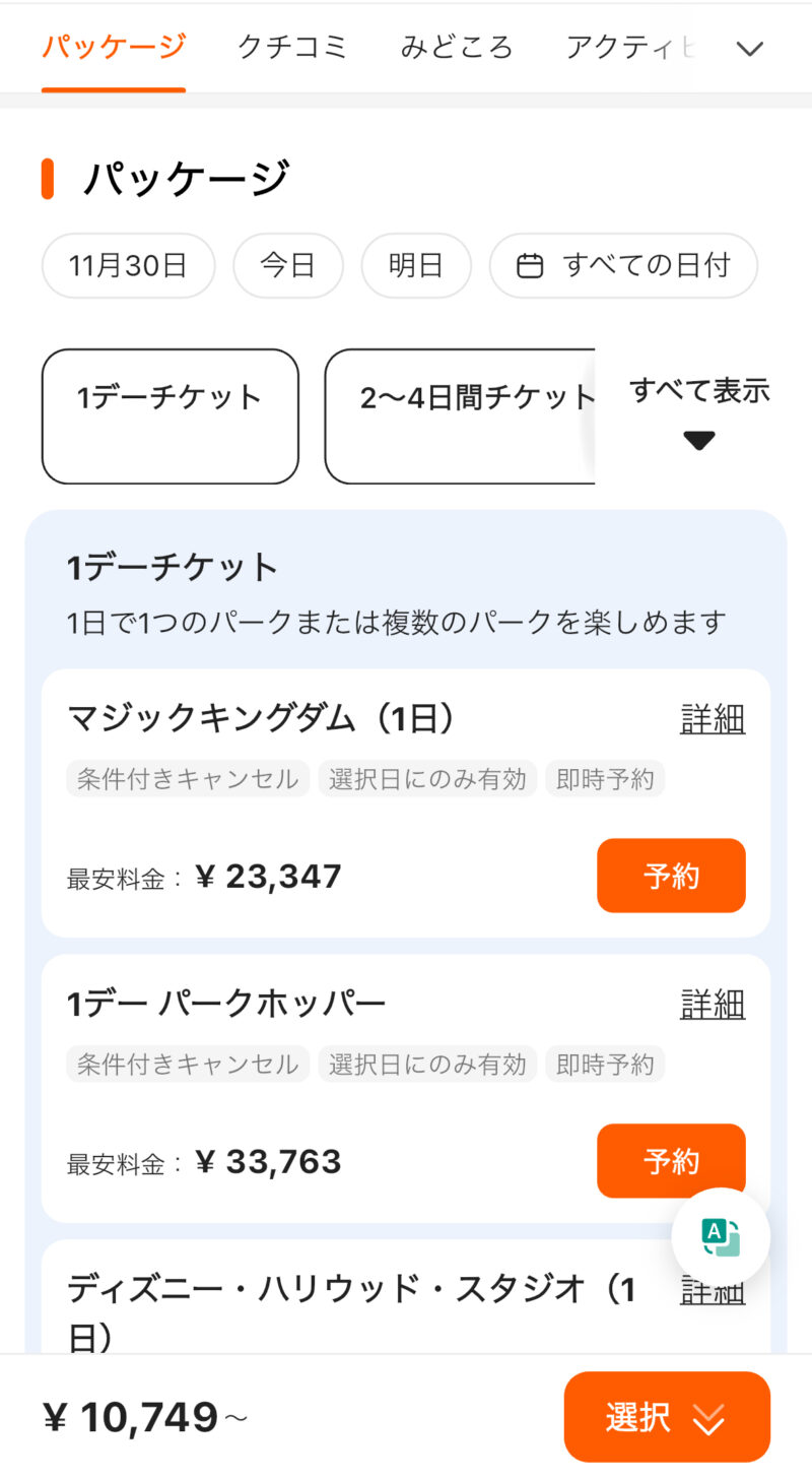 カリフォルニアディズニーの場合はKlookから予約できましたが、フロリダの場合、入園の3日前から公式アプリで予約となるようです。
