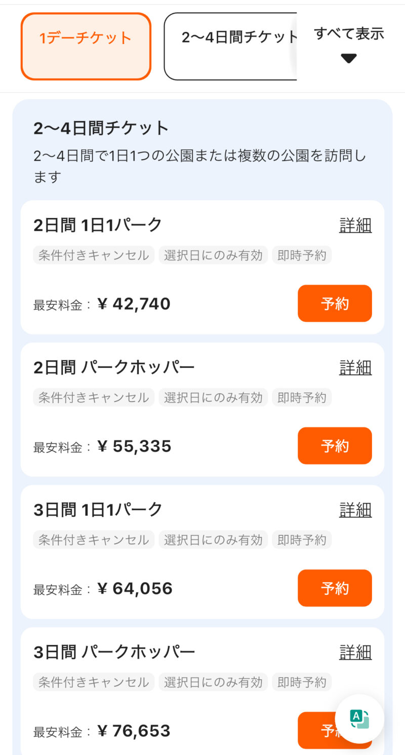 通常の「1パーク=1日」のチケットより少し高いですが、